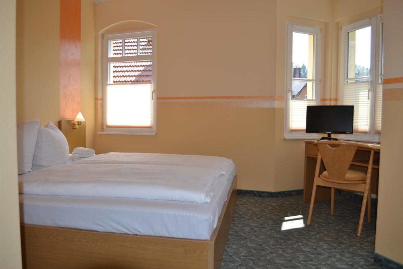 Doppelzimmer. Einfach eingerichtetes Zimmer mit einem Flachbild-Sat-TV, einer Sitzecke und einem eigenen Bad. ;