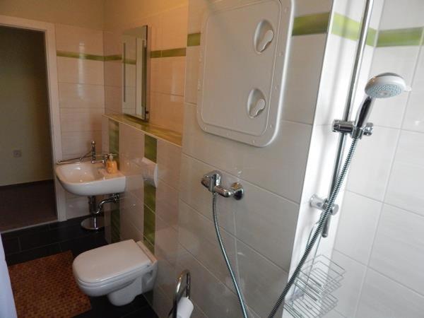 Diese Ferienwohnung besteht aus 2 Schlafzimmern, einem Wohnzimmer, einer voll ausgestatteten Küche mit einem Kühlschrank und einer Kaffeemaschine sowie 1 Badezimmer mit einer Dusche.