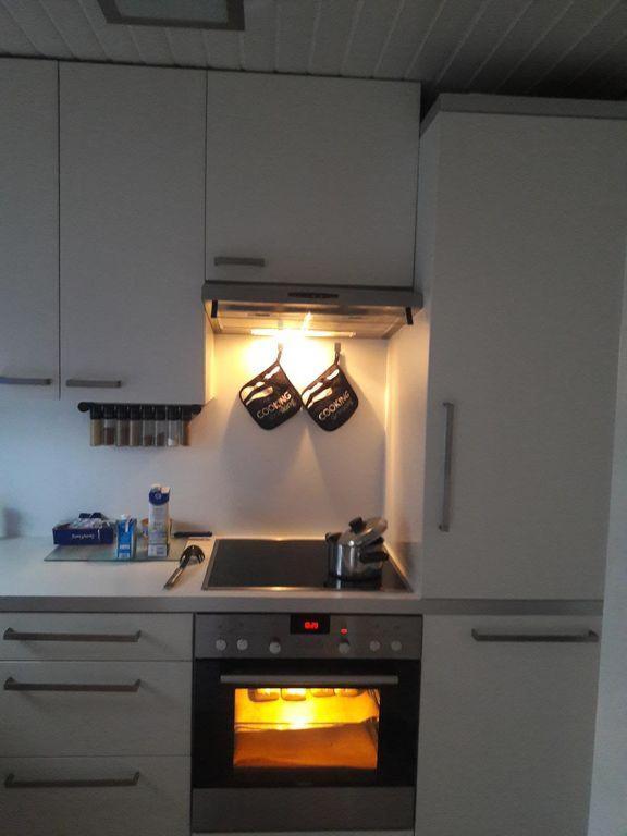 Ferienhaus mit Dusche. The holiday homes kitchen, which has a stovetop, is available for cooking and storing food. The holiday home features a washing machine and a terrace.