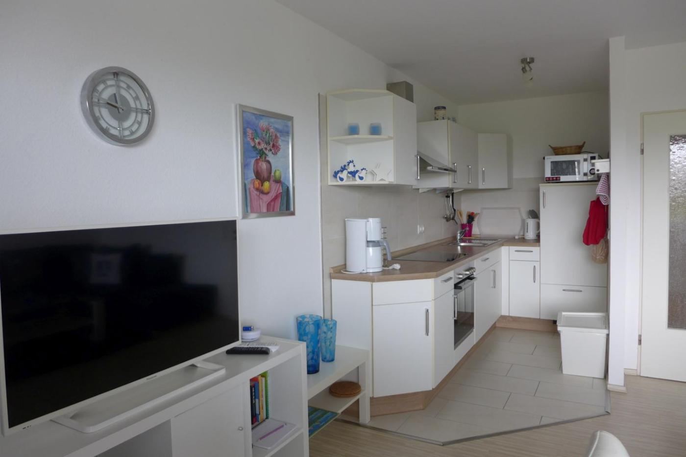 Apartment mit Balkon. This apartment is comprised of 1 living room, 1 separate bedroom and 1 bathroom with a shower. The well-equipped kitchen has a stovetop, a refrigerator, kitchenware and an oven. This apartment features a washing machine, a coffee machine, a TV with satellite channels and a balcony. The unit offers 3 beds.