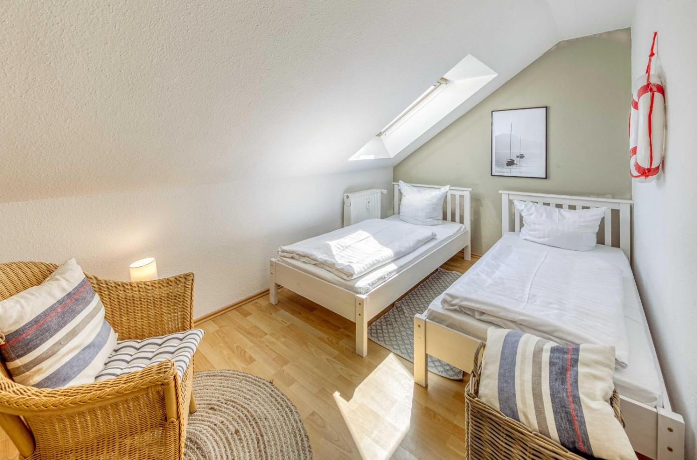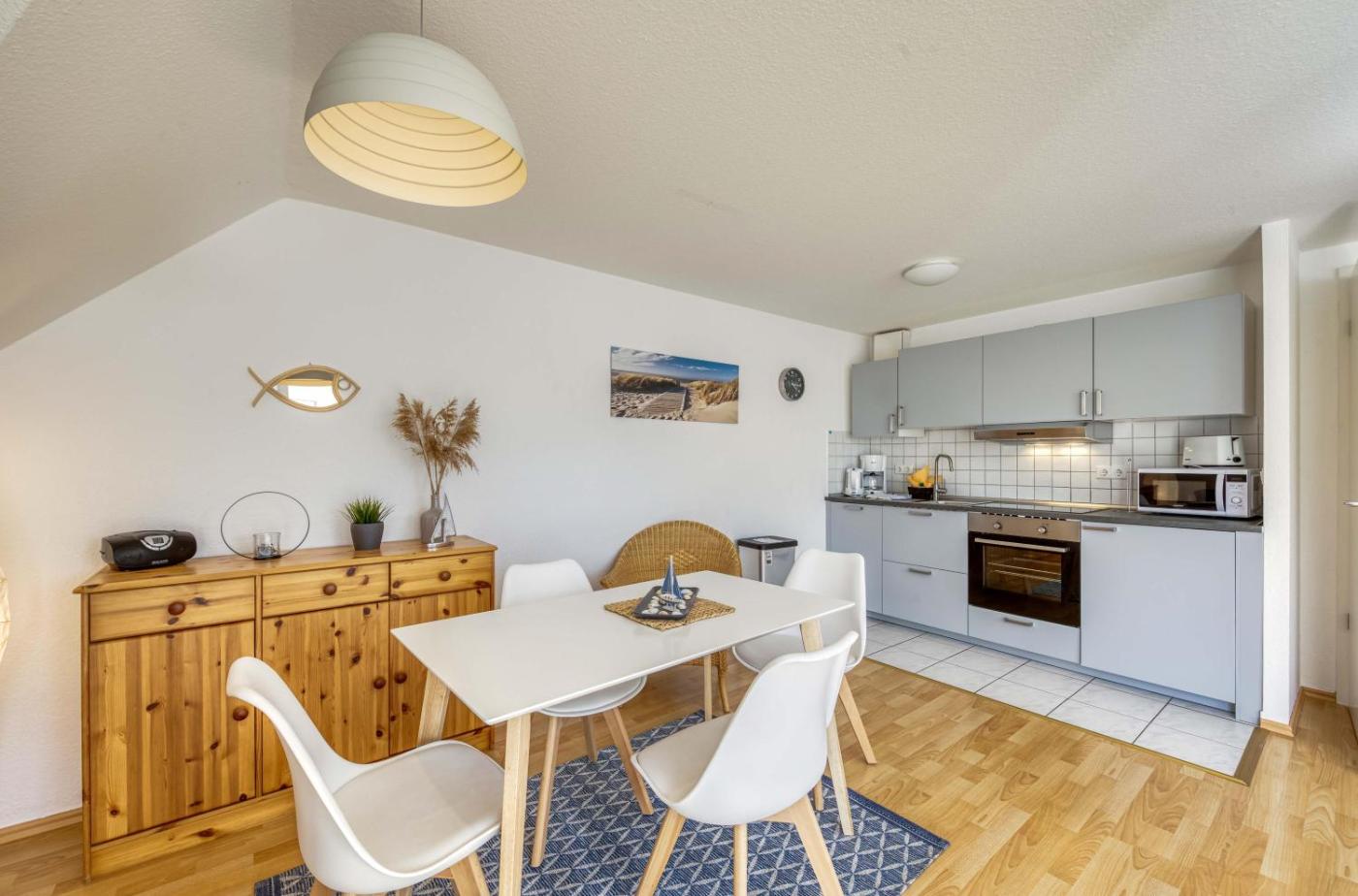 Apartment mit Balkon. The sauna is a top feature of this apartment. This apartment comes with 1 living room, 1 separate bedroom and 1 bathroom with a shower and a hairdryer. Meals can be prepared in the kitchen, which features a stovetop, a refrigerator, a dishwasher and kitchenware. This apartment has a washing machine, a coffee machine, a TV and a balcony. The unit has 2 beds.