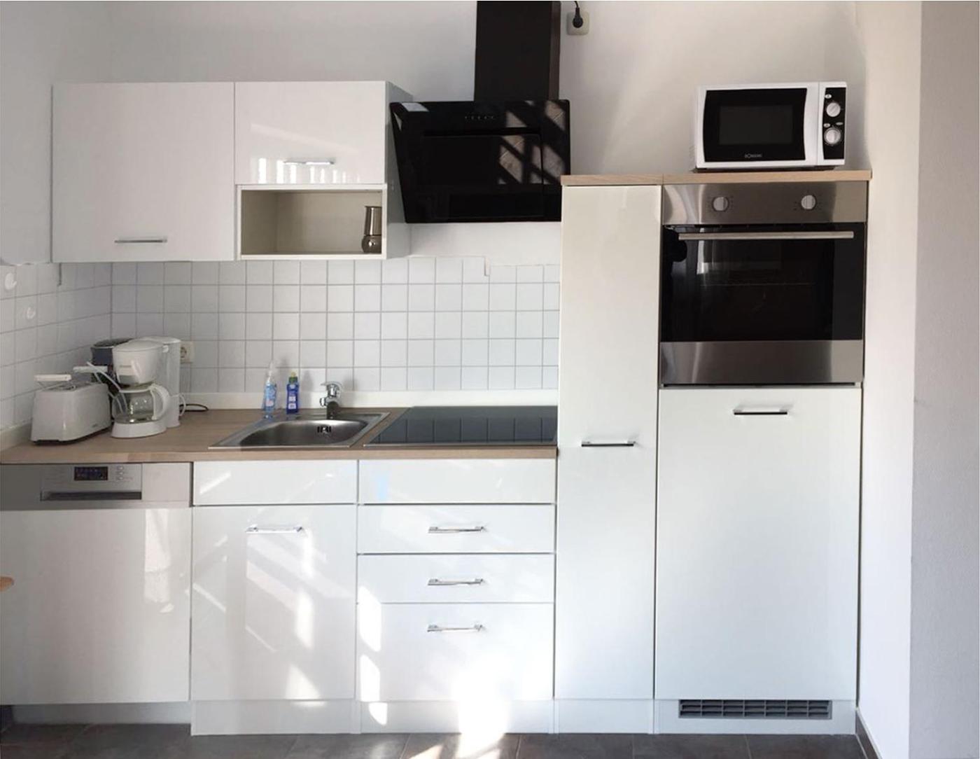 Es gibt außerdem eine Küche in manchen Wohneinheiten – mit einem Kühlschrank, einem Geschirrspüler und einem Ofen.